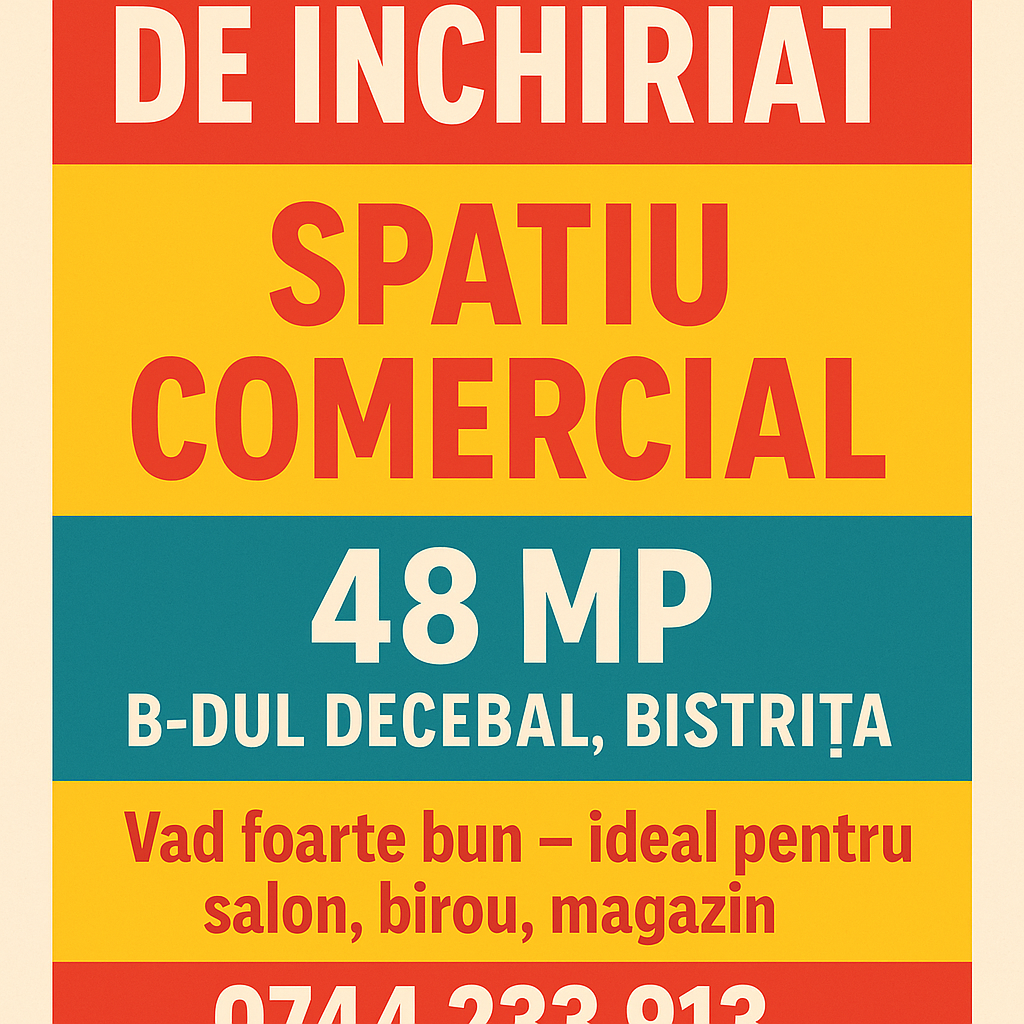 Spatiu comercial de inchiriat.48 mp.Bistrita.B-dul Decebal