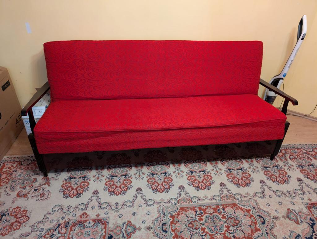 Canapea extensibila 3 locuri, din lemn, cu furnir nuc in stare foarte buna . Nu se asigura transport